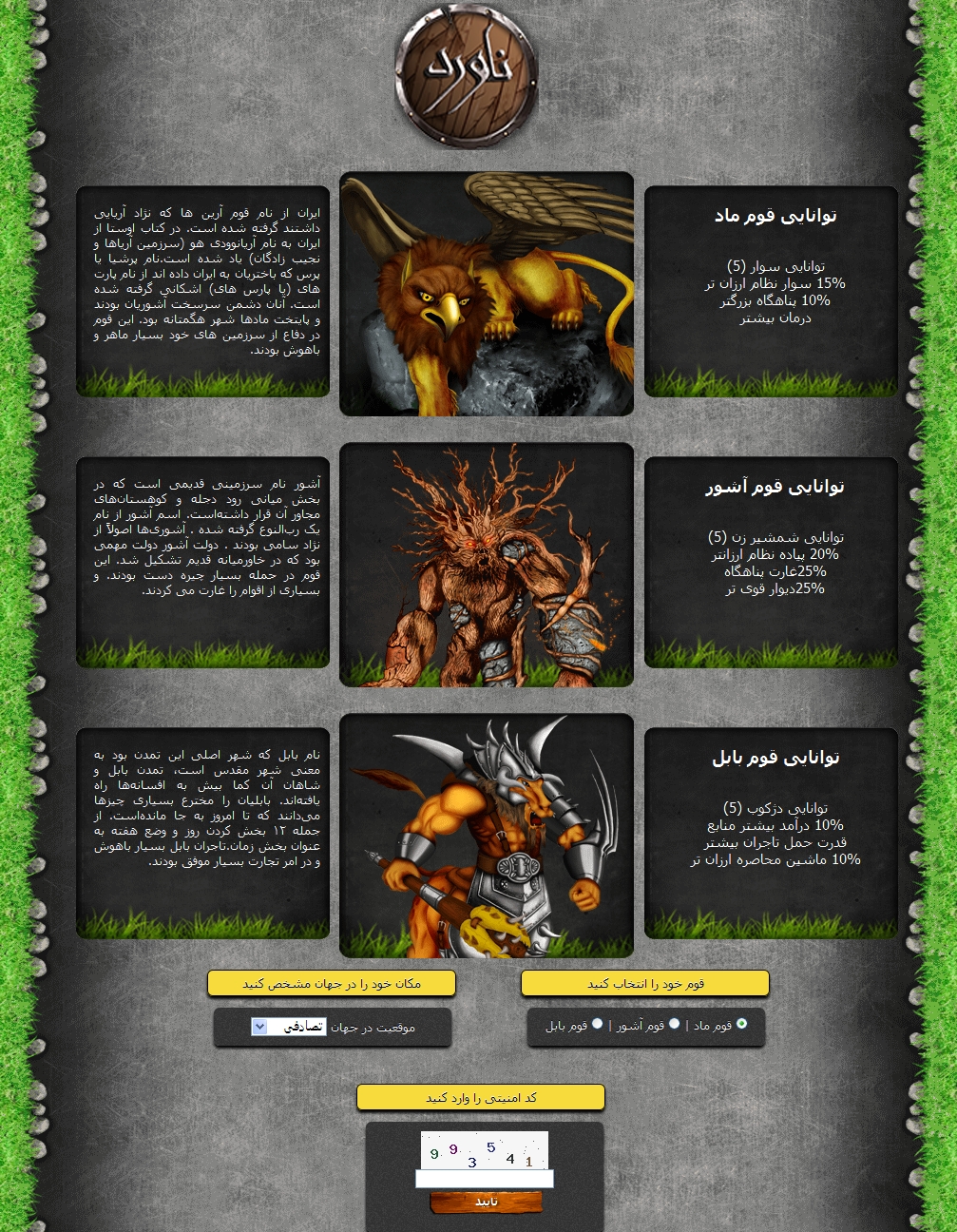 با پر کردن فرم صفحه نخست به صفحه بعد برای انتخاب قوم و محل قرارگیری در نقشه هدایت میشوید.