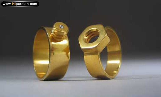 حلقه های ازدواج به شکل پیچ و مهره. این حلقه ها می توانند به هم چفت شوند!