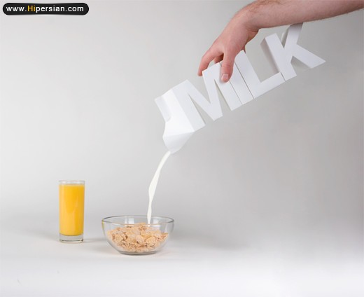 طراحی جالب یک پاکت شیر که با حروف MILK طراحی شده. شیوه نوین تبلیغات